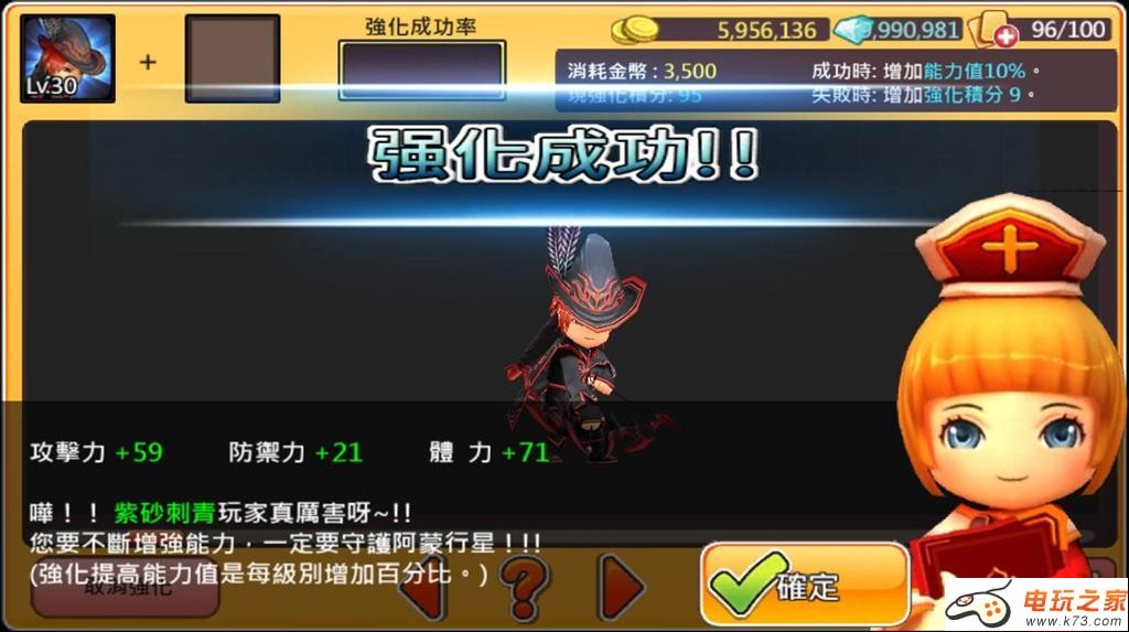 最后六星强化部份,个人的建议是0到+1先用3星去赌机率,因为这个时候的强化成本还只要3500而已,而+1以上的话就看你重视金钱或者是重视素材,如果金钱够多一样是靠3星堆强化积分上去(只是至少要花12张3星卡、7万以上的金钱),而如果四星五星素材卡够多,那就拚成功机率吧。不过通常来说后期钱会比钱还要好赚,所以靠钱来堆成功率其实CP值会比较好一些,尤其拿5星卡去当素材非常的昂贵!