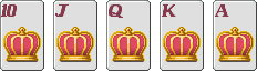 ロイヤル - 倍率×100 10~A数字的5张数字连续的相同图案牌 (10~A的ストレート+フラッシユ) |