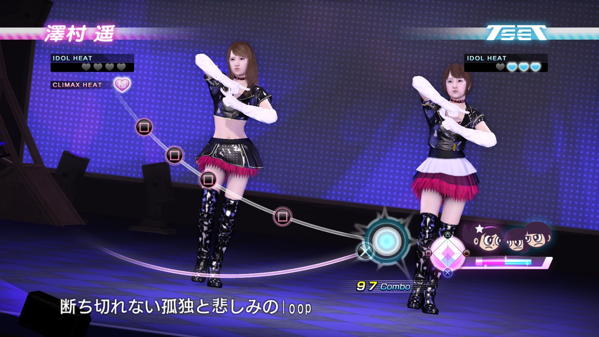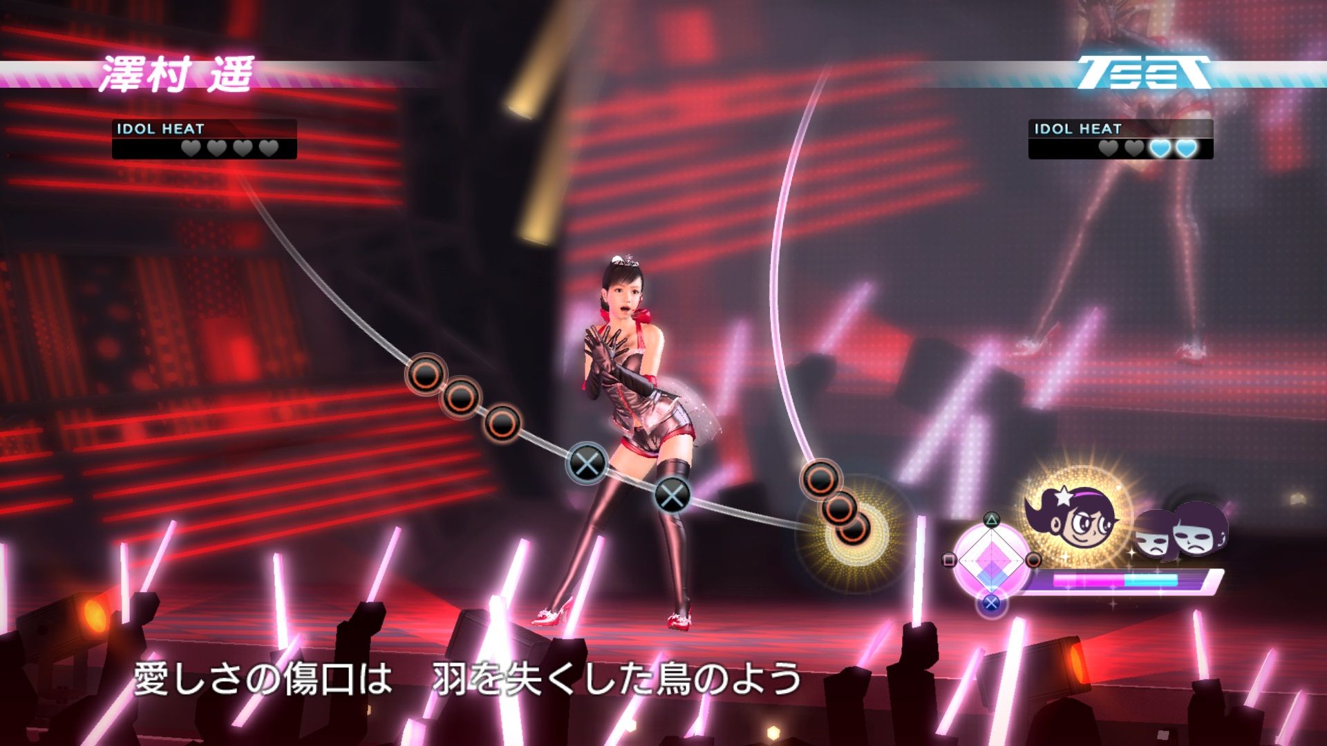 而在遥的能力培育方面,共有歌唱力、基础力、魅力与表现力各项基础能力,玩家们可以透过各种课程与工作来提升这个数值能力的等级,而且这个偶像能力还将会对应遥感的各个按钮(△:歌唱力(可透过课程锻鍊)/○:基础力(会随着遥的等级提升而成长)/□:魅力(须接受师匠的教导)/×:表现力(可透过舞蹈对战来进行锻鍊)),玩家们可以透过输入按钮获得得分来提升遥的偶像能力,或是透过专属的师匠(也就是老师)的教导来提升能力。而在遥的个人专属剧情中,除了会有身为塬顶尖舞蹈设计师,靠着独自的理论在世界舞台上大肆活跃,如今因为偶然的相遇,为了帮助遥成为一名充满魅力的女性,并希望透过遥的成长来面对自己过去的悔恨,重新取回自己失去的活力的Yoko登场之外,还会有会在决胜战之前给予遥勇气建言,在众多电视节目与杂誌连载中都非常活跃的手相艺人岛田秀平等等!