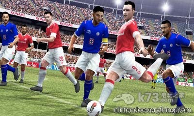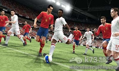 作为Konami旗下最富号召力的足球运动品牌,《实况足球PES》系列每年一作的习惯已经持续了n年了,各大游戏硬件也会均有登录。而官方将会把最新的《实况足球PES 2013》登录3ds平台的消息已经不是新闻了,官方于今日公布了一组3ds版本的全新实机截图画面,让我们