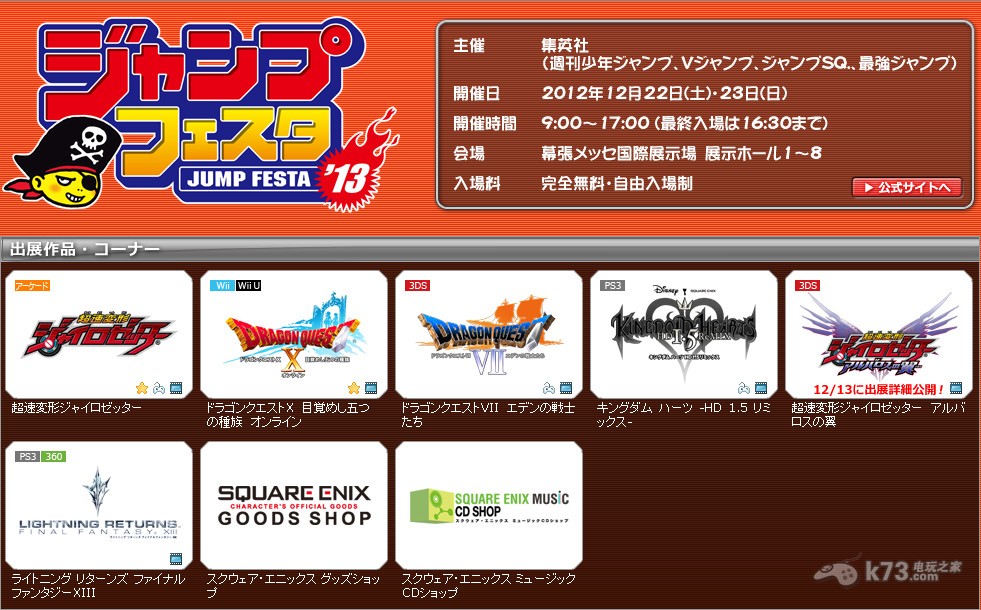 Square Enix将会在JumpFesta 2013上携五款游戏出场。