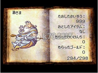 其实不只是神、图鉴上298个怪物中的任意一个,只要杀999个,第1000个之后即可取消战斗。简单的说也就是只要图鉴上显示这个怪打倒次数为999接下来遇到这个怪物即可取消。在999次挑战中,方法一这样秒杀神的情况只发生过6次。