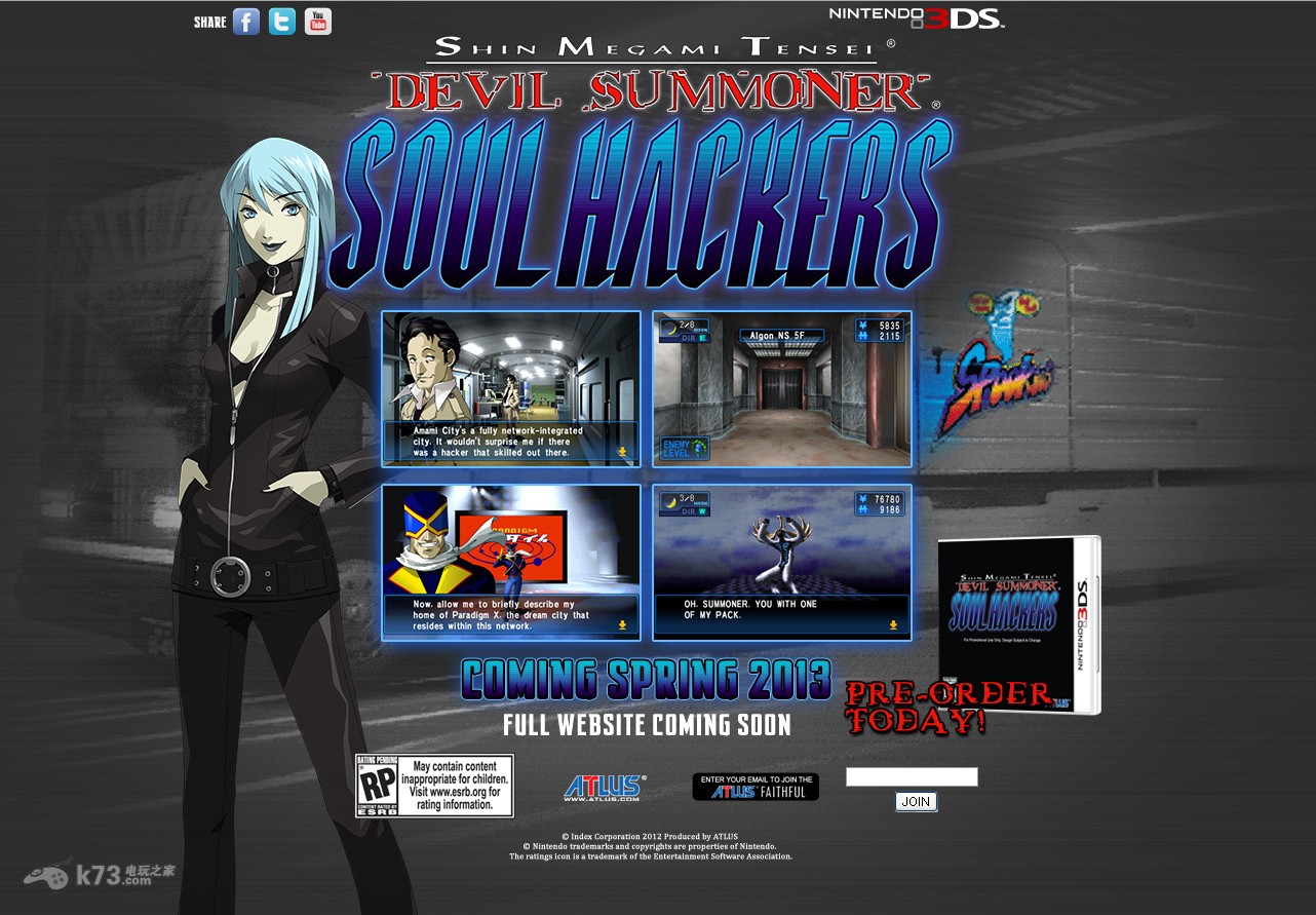 根据Atlus方面的最新消息,官方决定将今年发售的日版3ds游戏《恶魔召唤师 灵魂黑客》本土化后登录北美地区,游戏预定于2013年春季登录北美3ds平台,官方还放出了本作的宣传视频及截图。