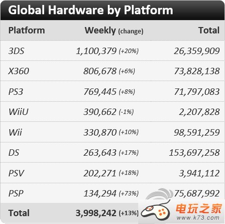 本周游戏主机销量3DS排首位,达一百万以上,其次为X360第二,PS3第三位,游戏软件方面X360销量排首位,PS3第二位,下面是本周游戏主机销量及游戏软件销量排名具体数据。
