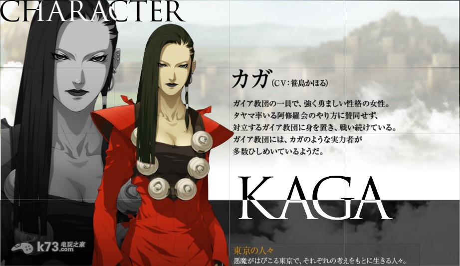 [bgcolor=rgb(255,255,255)]Kaga (CV: Kahoru Sasajima) – 盖亚教的成员之一,她拥有坚强勇敢的性格并且与总工会对抗着.