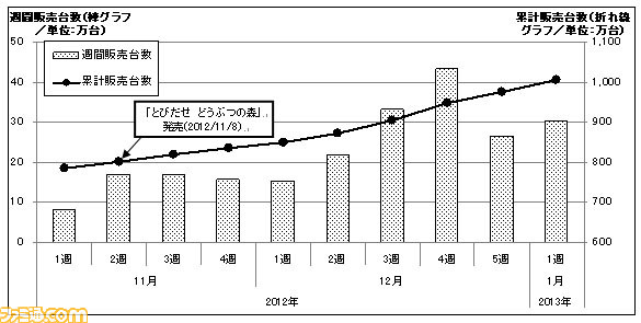 根据日本电玩通(Famitsu)周刊发行出版社enterbrain统计,任天堂于2011年2月推出的掌上型主机N3DS,日本国内累计销售台数(含N3DSLL)已于1月6日的统计中突破1000万台。
