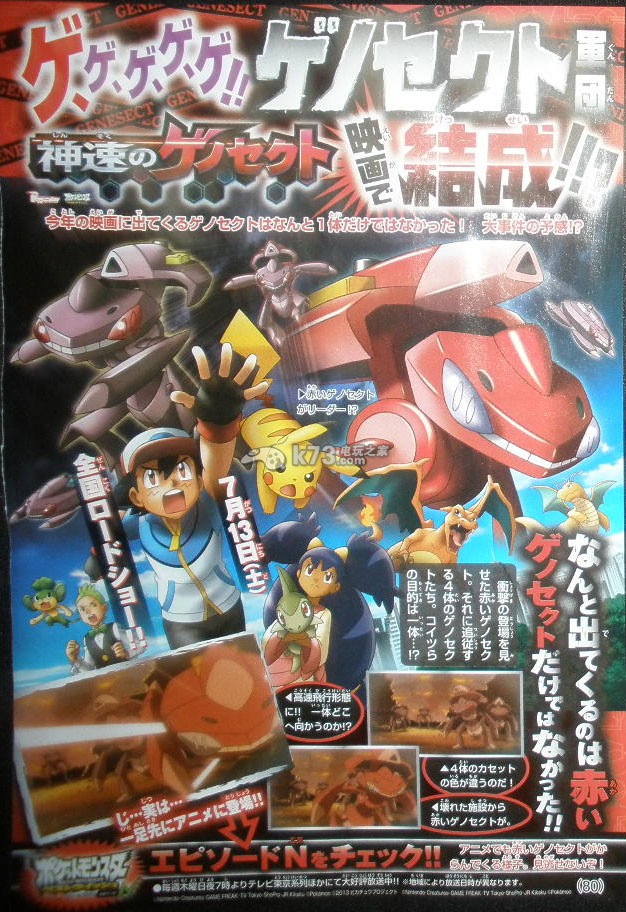 杂志图还揭露了在《神速的灭世虫》中会有5只灭世虫,四只是普通颜色,每一只喷射器不同,另外还有一只上个月揭露的色违闪光红色灭世虫,是他们的领队。红色的灭世虫事实上已经在动画“N之章”的一集中初次亮相,它还会在7月的剧场版中登场,意味着TV版的剧情会直接影响剧场版。这种情况上次出现是在《超梦的逆袭》中。