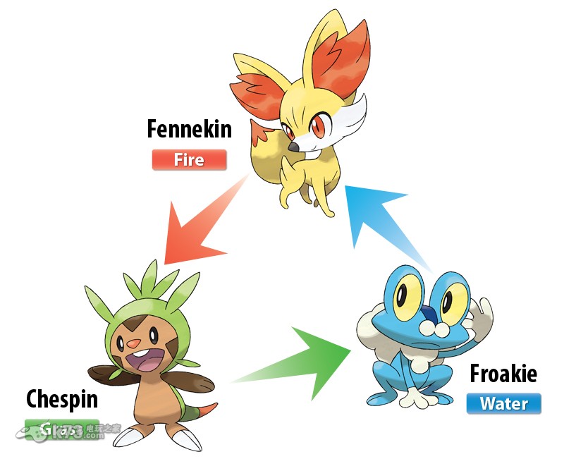 任天堂官方于日前首次公开了《口袋妖怪X》和《口袋妖怪Y》的实机截图及艺术图,这三只初始怪物分别 为Chespin, Fennekin和Froakie,同时还有部分神兽Xerneas和Yveltal的艺术图。