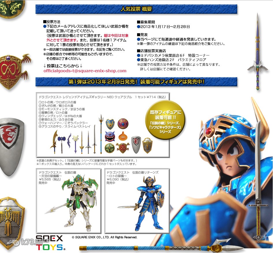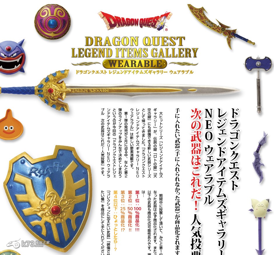 各位DQ系列fans还不前去官网页面进行投票!!!投出你最喜欢的武器和盾牌然后将其制作为手办后购买吧!