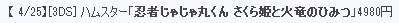 本周的fami通上官方确认这款系列新作名为《忍者茶茶丸君 樱花公主与火龙的秘密》,游戏的类型与原版相同,具体发售日期锁定在4月25日,价格为4980日元,游戏由Hamster制作。