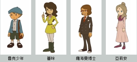 全名鲁克.多来顿,12岁,自称是雷顿教授的头号弟子,对雷顿教授非常尊敬,而且脑袋很好,还拥有可以跟动物沟通交谈的特技。