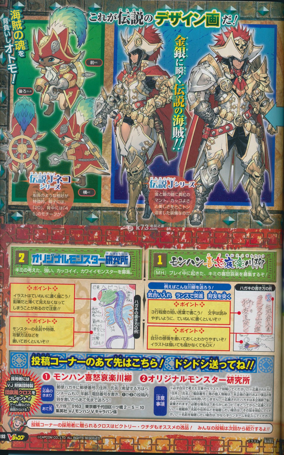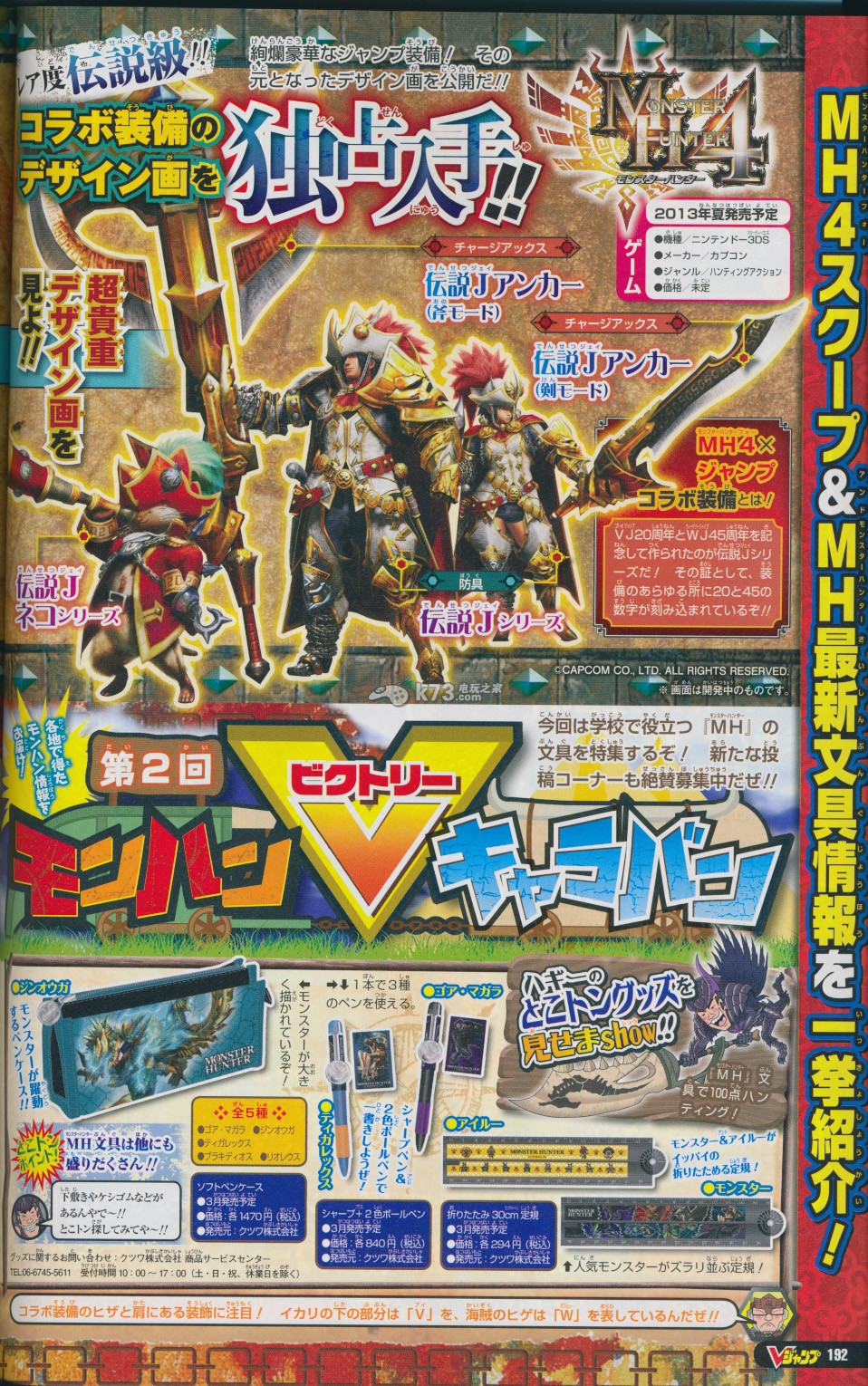 本周Vjump杂志图上公开了一批延期至今夏发售的3ds动作游戏大作《怪物猎人4》的全新杂志图,本次公开的杂志图提示了Vjump的另一大福利,那就是传说Joker蓄力斧的情报,配合之前公开的海贼套装,相当的霸气。