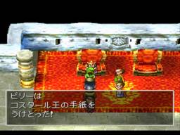往北来到コスタール城(Coastal Castle),来到宿屋没有看到老板,和宿屋下面酒吧戴牛头面具的人对话得知老板在教堂里,赶到教堂和女老板对话了解到要住宿得进过国王的允许,来到城里国王正在和大臣对话,和大臣对话后国王允许主角一行在城里休息。回到宿屋和老板对话后来到宿屋2F休息。睡到半夜被怪声吵醒,出来看到一个魔物,不一会儿魔物跑出了城。在城里和大臣对话,然后来到2F和阳台上的吟游诗人对话,刚要上3F时公主アニエス喊着シャークアイ(Sharkeye)从梦中惊醒,此时回到宿屋继续休息。第二天起来主角一行被国王召见,到城里和国王对话。