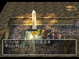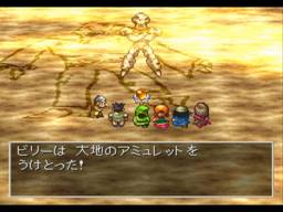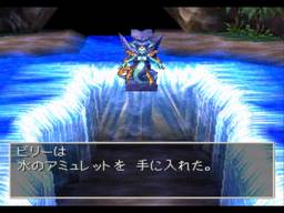回到砂漠の村(Dune)西北的小山丘,把宝石都交给老人后就会完成对大地の精霊(Terra Spirit)的召唤,然后大地の精霊(Terra Spirit)会把大地のアミュレット(TerraCham)交给主角!乘坐上面的传送池塘返回なぞの神殿(Ruin Temple)。