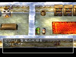 和セファーナ(Sefana)一同来到聖風の谷(Gorges)东南方的風の塔(Wind Tower)。守门的卫兵看到族长就让出了路。到風の塔(Wind Tower)最上层发生情节,随后被一阵风吹上天!塔里可找到1200G、すばやさのたね(AGLseed)、まもりのたね(DEFseed)、ちいさなメダル(Tinymedal)、やいばのブーメラン(Boomerang)、きせきのつるぎ(Miracle Sword)、しっぷうのバンダナ(AGL scarf)!