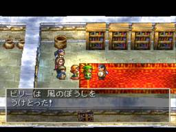 通过传送台会到达風の迷宮。这个迷宫是个立体的。在迷宫的最深处打开一个宝箱,里面是空的,刚要往回走时出现一个魔物,干掉魔物后得到風のローブ(Wind Robe)!迷宫里可找到ちいさなメダル(Tinymedal)、ひかりのドレス(Light Dress)、はやてのリング(Speed Ring)!