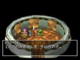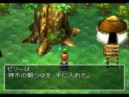 在村长家里把神木の朝つゆ(Holy Dew)喂给村长喝后,村长一下子就好了,他提议把神木の朝つゆ(Holy Dew)放到村中的井里。来到井上方和黑衣人对话后使用神木の朝つゆ(Holy Dew),却被黑衣人推开说主角一行往井里投毒,并把其他的村民叫来围住水井。