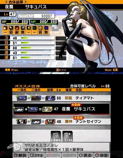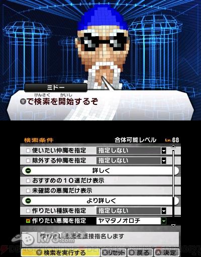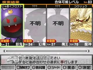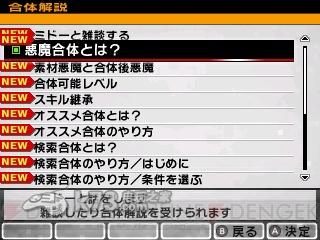 本作中搭载以检索为基本的新的恶魔合体系统。通过选择想要诞生出的新恶魔的名字,可以检索出此恶魔所需要的素材恶魔。有了这个,就算不知道恶魔合体的详细法则,也能轻松做出自己想要的恶魔了。了