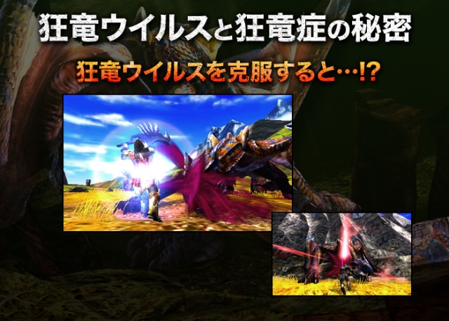 3DS平台游戏《怪物猎人4》官网近日公开游戏最新情报,狂龙病毒与狂龙症的相关资讯画面,下面一起来看看本作的创新之处吧!