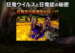 狂龙病毒是种会引发狂龙症、令受感染的怪物狂暴化的可怕病毒,受到感染的怪物双眼会泛红光,行动比平时更为兇勐狂暴。