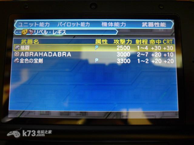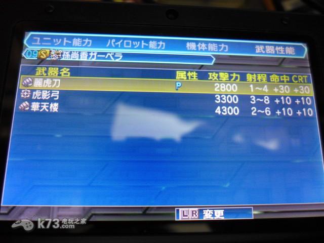 《超级机器人大战UX》角色能力界面: