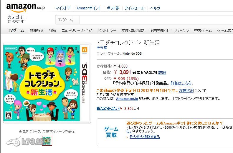 日前,日本亚马逊方面公开了3ds将于4月18日发售的休闲聚会游戏《朋友聚会新生活》的游戏预订页面,同时官方还放出了本作的封面包装图的清晰大图,以下是详情。