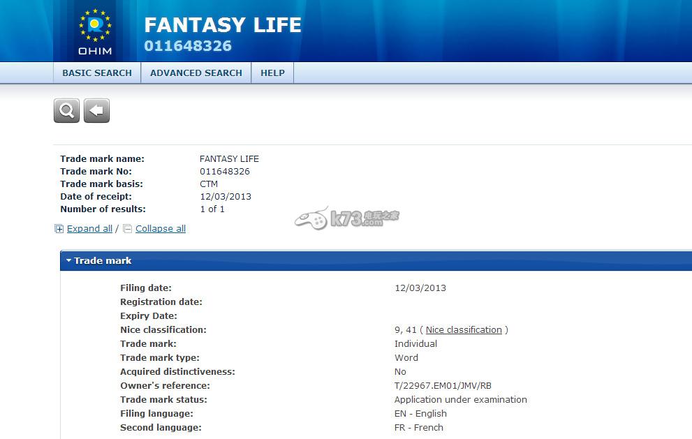 幻想生活登录欧洲3ds:商标注册