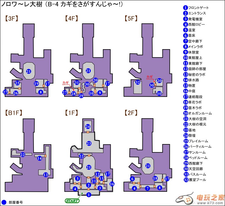 - 食虫植物に捕まらないように左に進み、扉から(4)西館ロビーに行く。食虫植物をストロボで怯ませながら進めば食べられない。