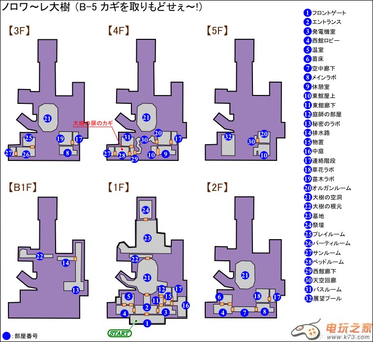 | 大樹の扉のカギ | (28)ベッドルーム | オバ犬を倒した後に入手 |