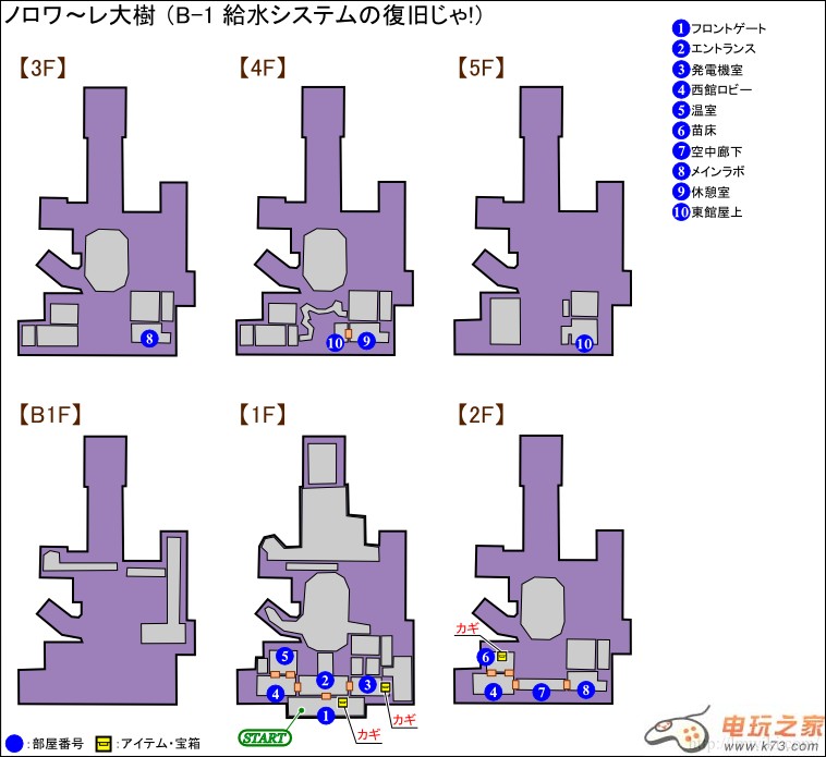 | カギ | (6)苗床 | 部屋中央にある宝箱から入手 |