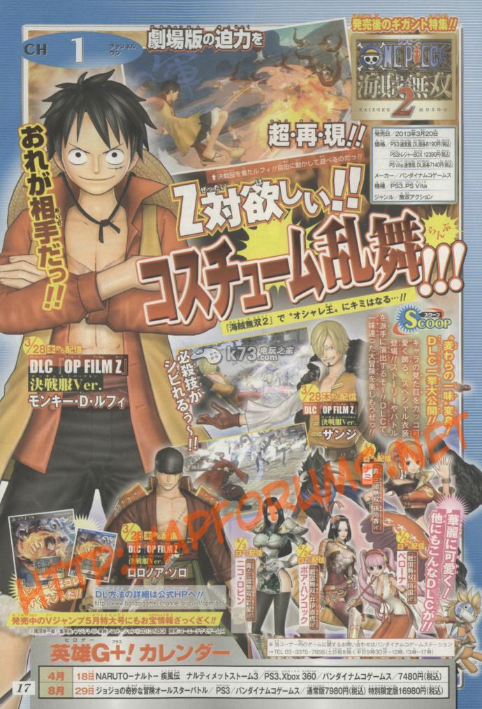 本作为PS3上的《海贼无双》的续作,游戏的舞台转移到了新世界,以路飞一行人两年的修行之后作为主要剧本。NAMCO BANDAI Games公开了PS3/PS Vita无双动作游戏《海贼王无双2》的Jump Festa宣传影片,内容主要以先前释出的首波影片为基础,再加入“两年后娜美”以及鲁夫和艾涅尔对决的经典场面。下面就让我们一起看看游戏的全流程攻略以及隐藏关卡出现条件和个人的心得评价,有兴趣的朋友可以一起看看!