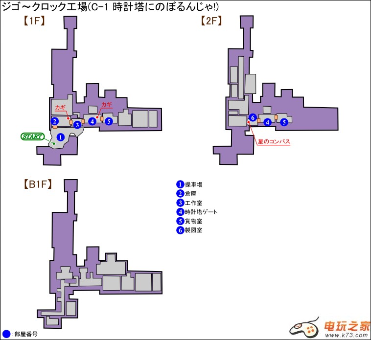 - 部屋の中央付近で製作されている機械にストロボを照射すると爆発してルノーマ2体とバトルになる。ルノーマたちを倒した後、右の扉から(4)時計塔ゲートに行く。