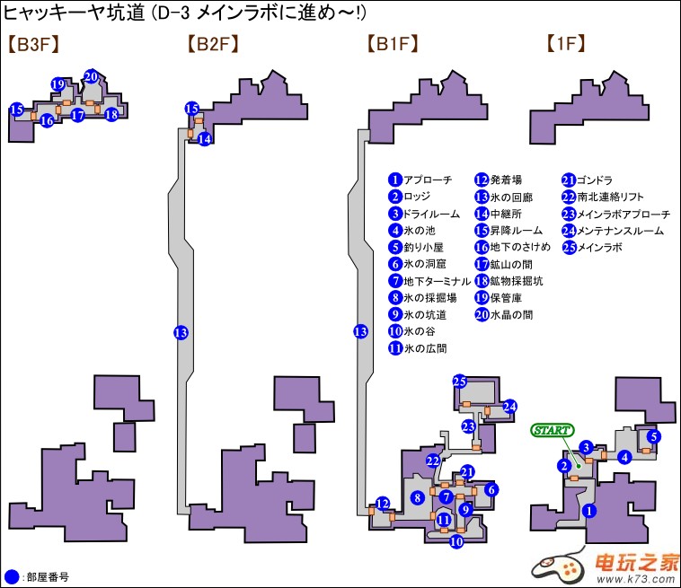 - ゴンドラの扉を開けようとすると、オバケたちが現れて扉を鎖で封印してしまう。DSでオヤ・マー博士と会話後、手前の扉から(9)氷の坑道へ行き、(10)氷の谷を通って(11)氷の広場まで行く。