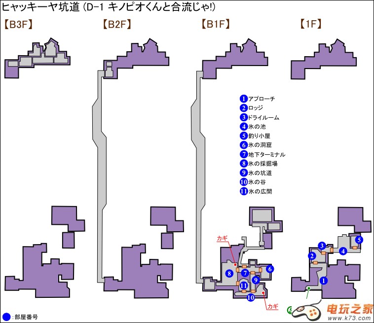 - 手前側の扉をカギで開けて(9)氷の坑道に行く。