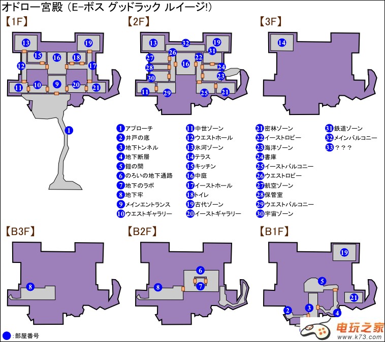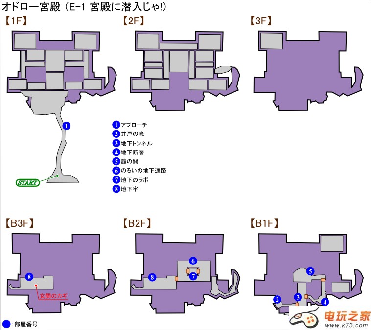 - オバケたちを倒した後、部屋の奥にある椅子を調べてB2Fの(6)のろいの地下通路に行く。