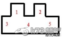 场景7:这里要使用箱子压机关了。如下图,我们先使用最初的三个箱子压住2、3、4这3个机关。然后去打击右边的黑色柱子,当柱子到底后会发出蓝光表示正 确,然后我们要在一定时间内赶到场景上方取得新的箱子。之后用4个箱子压住1、2、4、5这4个机关并重复上述步骤,取得场景下方的第5个箱子后就能开启 场景右边的门了。