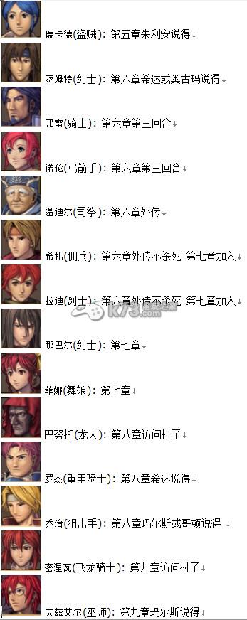 火焰纹章系列一直以其超多的角色和性格不同的同伴们而吸引了众多玩家的喜爱,《火焰纹章光与影的英雄》中同样保留了这一系统,玩家在每个地图中都有可能发现新的我方同伴,下面就给大家带来本作中全部同伴角色加入的具体方法。