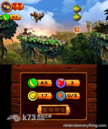 发售在3ds平台的《大金刚回归3D》相比Wii版加入了部分全新的要素,游戏支持玩家在本地游戏时分享你的整个游戏过程中的乐趣和冒险经历。另外,游戏中还加入了首次进行游戏的玩家的简单模式,Donkey Kong和Diddy Kong的生命值都得到了增加。任天堂欧洲方面还表示3ds版《大金刚回归3D》中将会加入“3ds版独占的全新内容”,到底是什么呢?请期待我们k73的后续报道。