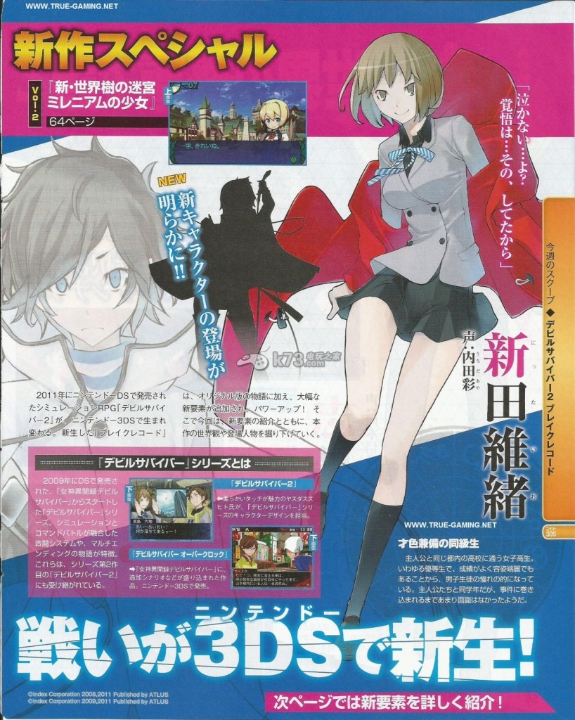 本周fami通杂志图上公开了Atlus将于3ds平台发售的强化作品《角恶魔幸存者2 超频》的全新情报,本作的主要同伴角色以及3ds版中的新角色的情报得到了基本判明,以下是杂志图详情。