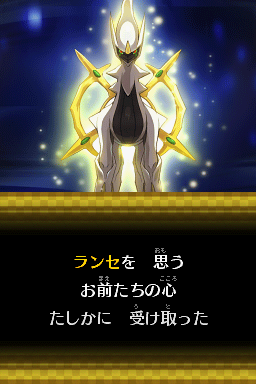 阿尔宙斯倾听了信长的心,并且说等主角成长后再会,消失了。