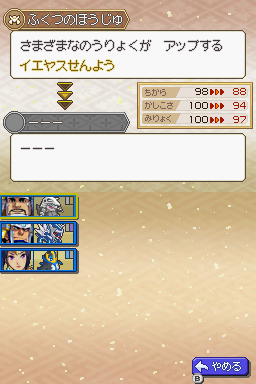 让LINK值60-70以上且武将进化过一次的家康稻姬忠胜在不屈国一起待机,得到不屈之宝珠。