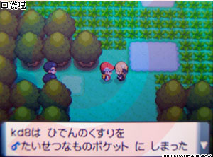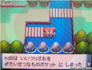 去だいしつげん门口,碰到银河团团员,对话后团员往右出城,主角在出城时会碰到对手。向R-213追银河团团员,在沙滩上会抓到他,但是又逃了。在林事湖边附近会再次碰到他,战胜他即可。之后在湖边碰到白带市的馆主,对话后将ひでんのくすり[秘传药]交给主角并让主角完成一任务。回到瑞镇,对着傻鸭使用秘传药,馆主小姐会出现,对话后完成任务。