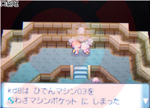 打败馆主后得到徽章和TM91,秘传机怪力也可以使用了。离开训练馆后跟对手对话,然后前往图书馆3F。一段对话后即可离开图书馆。前往林事湖边,发现湖水已经被银河团抽干了。进入湖中的洞穴,打败银河团团员。接下来飞到白带市,走进右边的山洞,用秘传机怪力推开石头,进入R-216和R-217,途中可捡到TM07和HM08 攀岩。来到キッサキシティ[冰雪之镇],挑战训练馆。