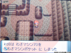 正想从城市的左边离开黑金市时,主角又碰到了对手,对话后得知下一个训练馆在ハクタイシティ[白带市]。之后回到刚才R-203的クロガネゲート洞穴,在里面可以找到TM70 フラッシュ[闪光]。
