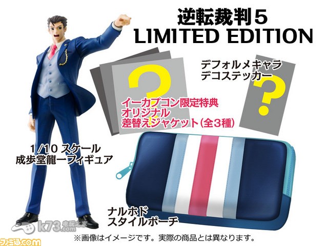 Capcom官方还会发行一个《逆转裁判5》的限定版豪华内容,包括一个系列主角成步堂龙一经典形象的1/10比例的手办!