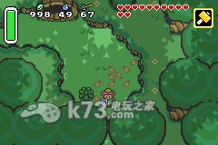 木桩可以用锤子敲平。举起小石头会发现能通往黑暗世界的蓝色地板。来到黑暗世界,向上走进入张开口的大骷髅头就能进入LV3迷宫(注:此迷宫有多个入口,当一处无路可走时,可尝试别处入口。森林里正方形的洞穴跳入也能进入迷宫)