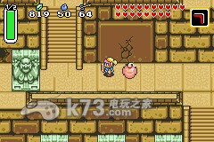接着来到黑暗世界的炸弹屋(光明世界里林克的家),可以花100卢比买到红色炸弹(居然要拖着走。。。按“R”即可放下炸弹),接着来到金字塔(光明世界的皇宫)用炸弹炸开图示处的墙