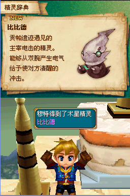 走出这个地方,往右上台阶,风精灵会在最上面的平台上,登上平台,穆特一靠近它,它就会跑开,等它停在某根柱子旁边的时候,用抓握冲向柱子,撞上它,触发战斗,胜利后获得风精灵比比德。