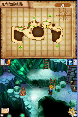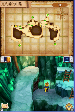 (看到这里,大概就能明白之前那两滩水是怎么回事了,诺布尔应该是从米雅丽哪里学会了冰霜之术,所以他们一行人是在恭帕遗迹的门口处通过那滩水结成冰柱直接登顶,然后从右边的另一滩水那里走到藤梯处然后下来的,所以这两滩水是为了使NPC的行动合理化而设置的——但是我很不解为啥他们不把遗迹门口那个宝箱开了呢XD)