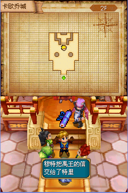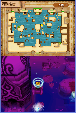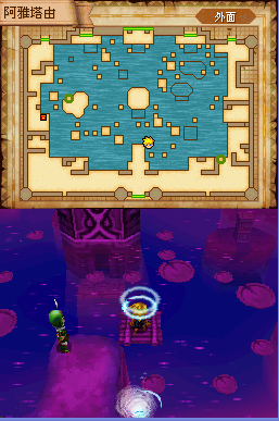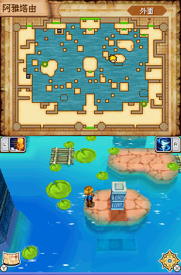 出城往西南,按路牌的指示到达阿雅塔由。对拦路的士兵使用禹王的信,可以通过了。在竹筏上,使用旋风可以使竹筏往风的反方向运动。走过第一个竹筏后那棵高树上有个力量苹果。第二个竹筏按上、左运动可以到达左侧地面上,取得宝箱里的精神饼干。按右、上运动即到达王城。对挡路的士兵使用信,进入王城,把信交给侯惇将军(侯惇还独眼……很恶搞)。